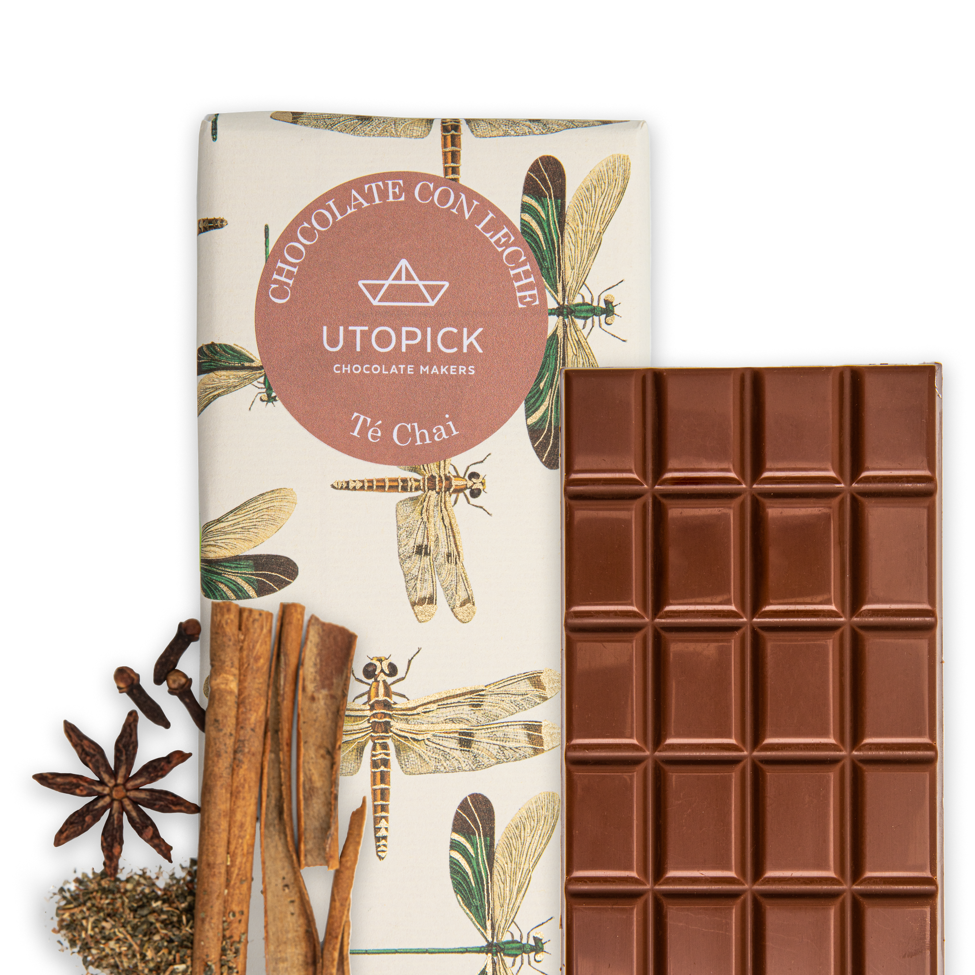 Tableta de chocolate con leche 38% de cacao y té chai.