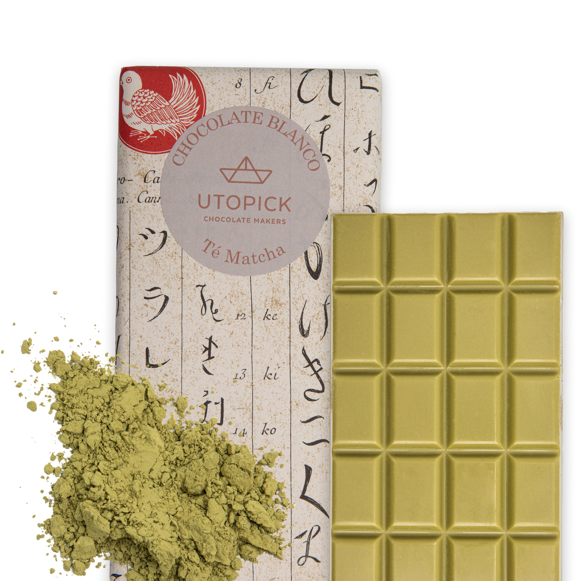 Tableta de chocolate blanco 34% cacao con Té Matcha.