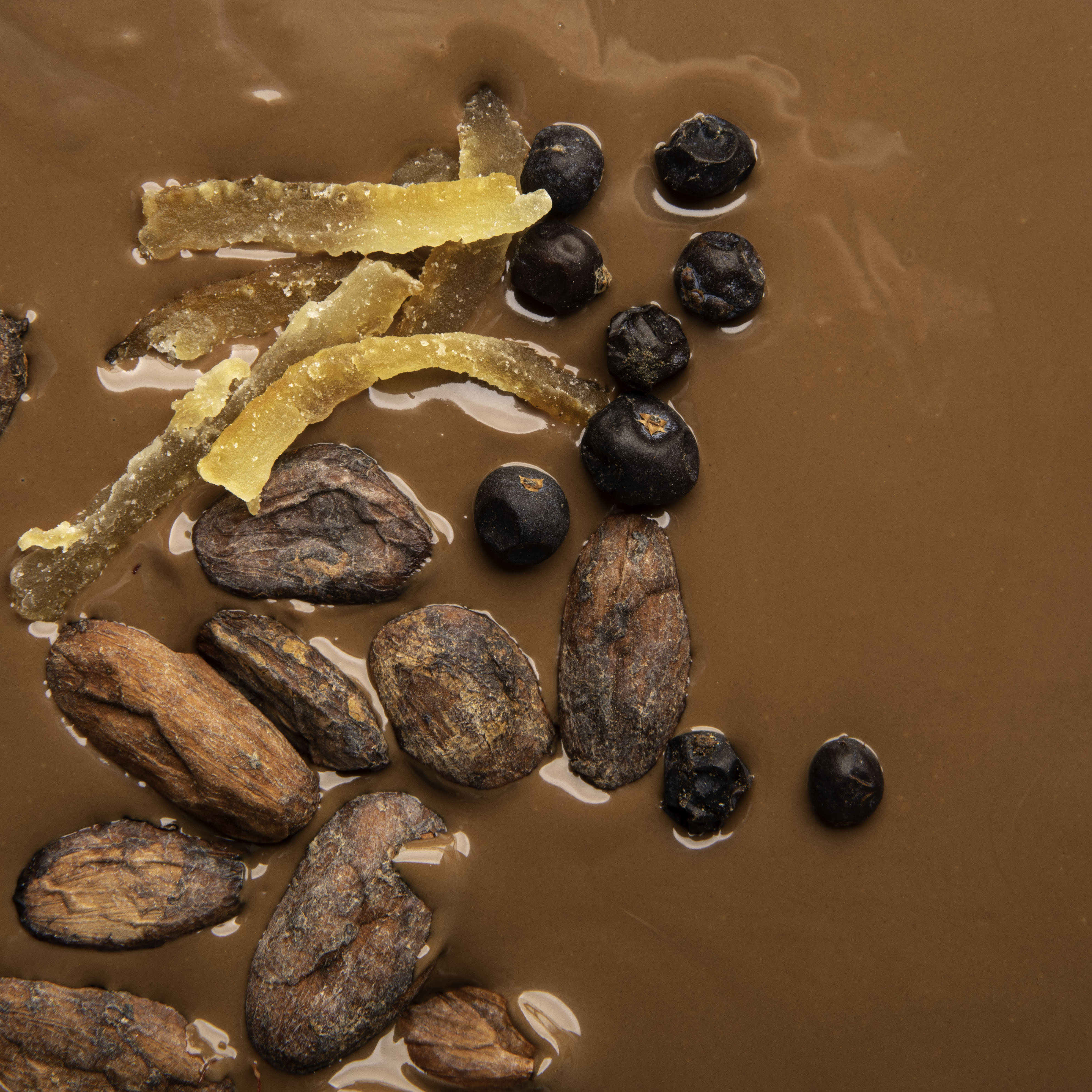 Tableta de chocolate con leche 56% cacao con enebro y limón