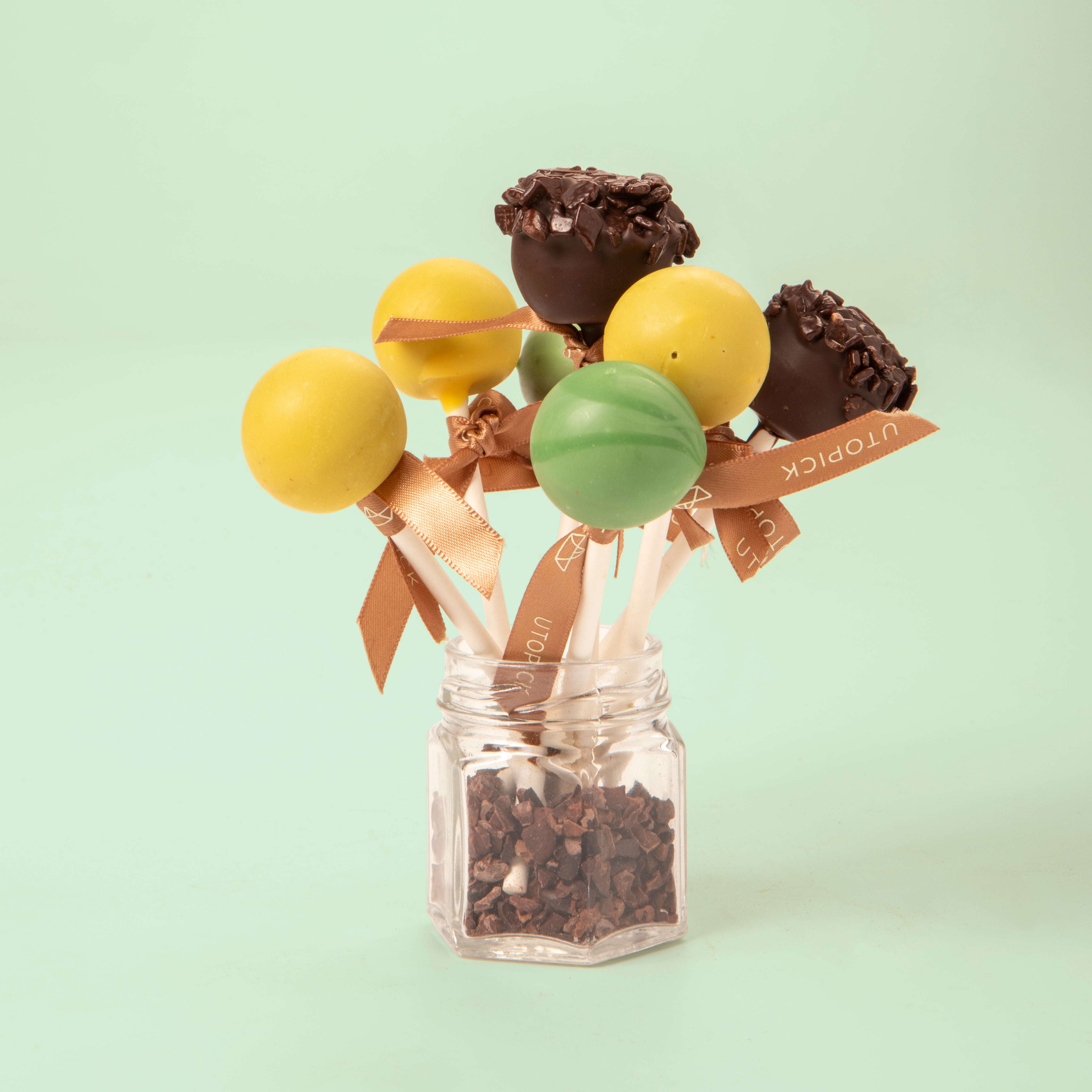 Piruleta verde chocolate y gianduja