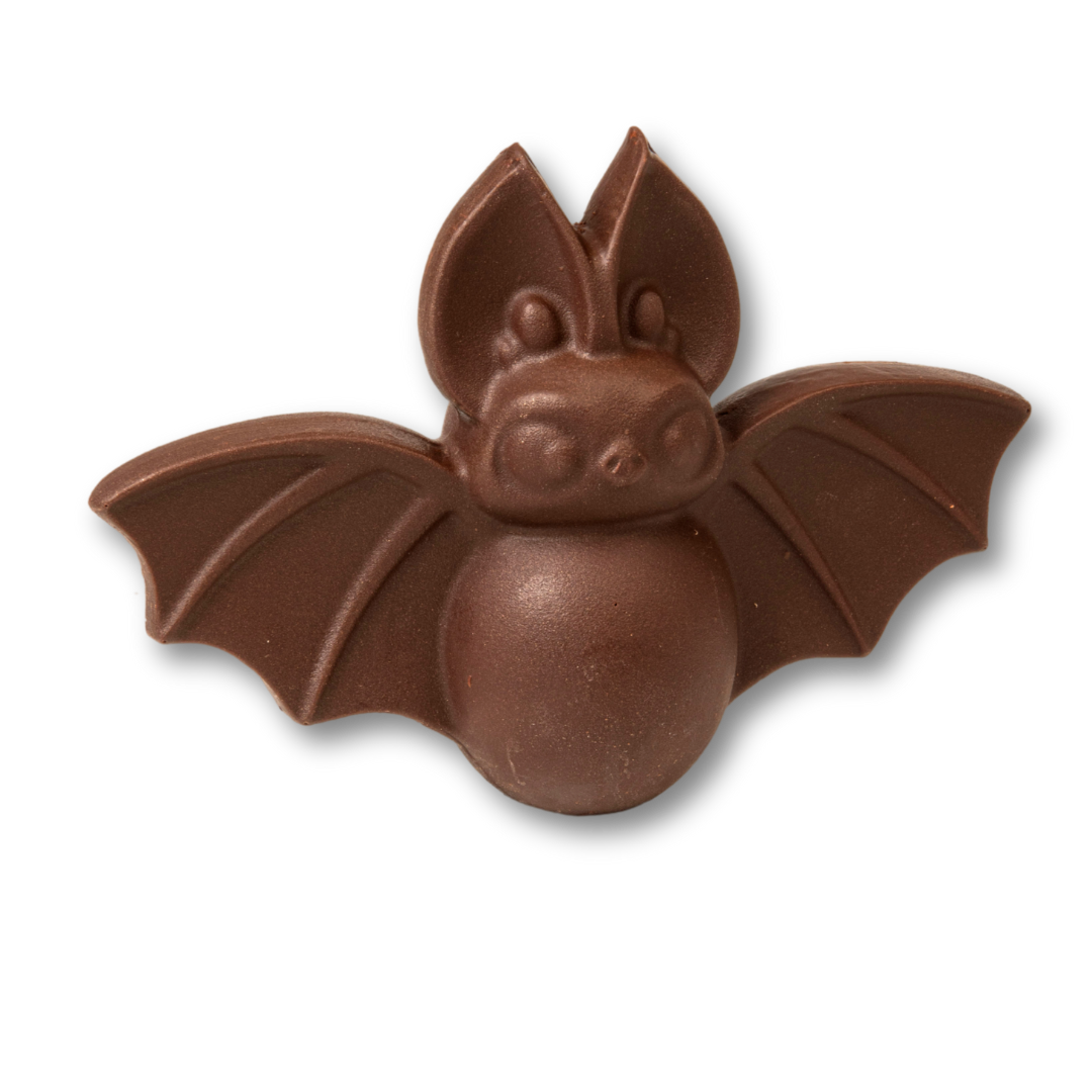 Murciélago de chocolate negro o con leche relleno de chuches.